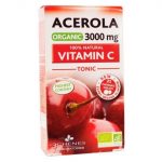 Un comprimé d’Energie Acérola assure 200% des AJR (Apports Journaliers Recommandés) en vitamine C avec un délicieux goût fruits rouges,